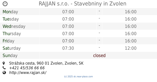 | Saturday | closed | |||||