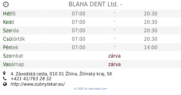 | Szombat | zárva | |||||