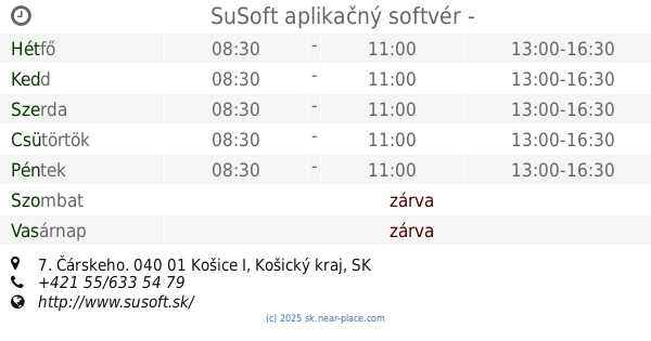 2, Cimborkova, 040 01, Košice I, Košický kraj, SK Slovakiaérintkezés telefon: +421 903 612 678