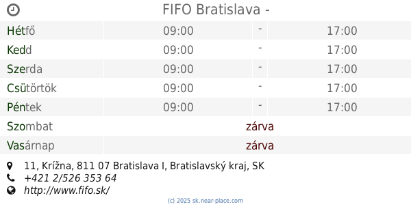 | Szombat | zárva | |||||