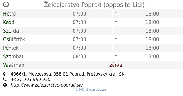 Železiarstvo Poprad (opposite Lidl)
